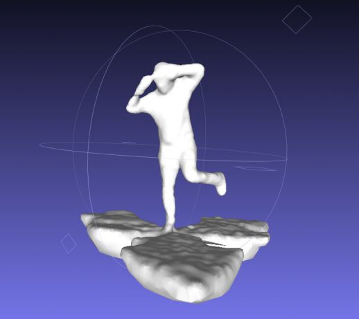A first 3D scan of myself. Test set-up with 3 Kinects, point cloud exported to Meshlab to generate a mesh.